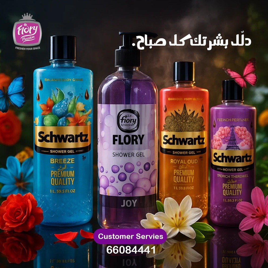 - “اكتشف متعة الاستحمام مع شاور جل فلوري بروائح متعددة تناسب كل لحظة وكل مزاج. من نفحات الفواكه المنعشة، لروائح الزهور الرومانسية، لانتعاش الطبيعة الساحر. رغوة ناعمة تنظف بلطف وتترك بشرتك منتعشة ومعطرة بعطر يدوم طويلًا. فلوري… تجربة استحمام بتفاصيل مختلفة كل يوم.”